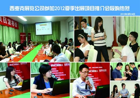 5月24日,西麥克展覽公司應(yīng)邀參加了在機(jī)械工業(yè)出版社舉行的2012夏季出展項(xiàng)目推介會,這次推介會由《進(jìn)出口經(jīng)理人》雜志主辦,大會內(nèi)容豐富、氣氛熱烈。西麥克展覽公司在此次的會上,共推介了羅馬尼亞中國工程技術(shù)展、尼日利亞中國商品展及墨西哥國際塑料展3個展會項(xiàng)目。我公司業(yè)務(wù)三部尤愛靜、業(yè)務(wù)四部溫萬河、業(yè)務(wù)八部王匡和信息及客服部李靜出席會議并發(fā)表演講。