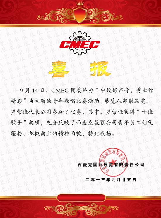 西麥克展覽公司員工獲中設(shè)好聲音十佳歌手獎項