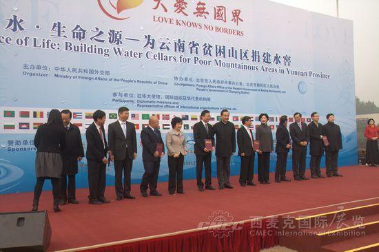 2013年11月2日,第五屆“大愛無國界”國際義賣活動在北京市朝陽公園隆重舉行。本屆義賣由外交部長王毅夫人錢韋女士主持,主題為“水·生命之源——為云南貧困山區(qū)捐建水窖”。王毅部長、外交部扶貧工作名譽(yù)大使樂愛妹及90多家駐華使館、國際組織駐華機(jī)構(gòu)代表出席開幕式。