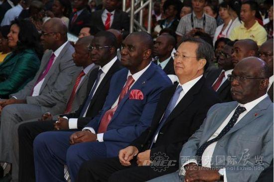 圖為高克祥大使陪同羅安達(dá)省長等安政府高官出席中國館日慶典活動