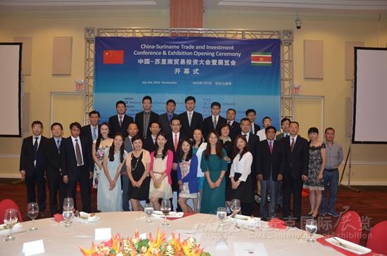 當(dāng)?shù)貢r間7月3日,由商務(wù)部主辦、外貿(mào)發(fā)展局和我司聯(lián)合承辦的中國-蘇里南貿(mào)易投資大會暨展覽會在皇家多娜麗嘉酒店舉行開幕式,駐蘇里南大使楊子剛、蘇貿(mào)工部長托森灸尤、工程部長帕梅薩和蘇中央銀行行長霍夫德拉德等蘇政府官員、中蘇企業(yè)代表、蘇僑界人士和蘇新聞媒體共120余人出席。