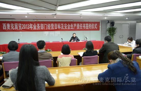 2012年西麥克展覽公司各項(xiàng)經(jīng)營(yíng)指標(biāo)均取得較好成績(jī),面對(duì)2013年嚴(yán)峻的國(guó)際經(jīng)濟(jì)形勢(shì)和外部環(huán)境,西麥克展覽公司將確保完成總公司經(jīng)營(yíng)任務(wù)為中心工作。按責(zé)任到人、分級(jí)管理、全員參與的原則,層層分解和落實(shí)全年經(jīng)營(yíng)工作和安全生產(chǎn)責(zé)任,3月12日,公司舉行了《業(yè)務(wù)部門經(jīng)營(yíng)目標(biāo)及安全生產(chǎn)責(zé)任書》簽字儀式。簽字儀式上,張總與業(yè)務(wù)部門負(fù)責(zé)人公司及分管領(lǐng)導(dǎo)共同簽署了《業(yè)務(wù)部門經(jīng)營(yíng)目標(biāo)及安全生產(chǎn)責(zé)任書》。