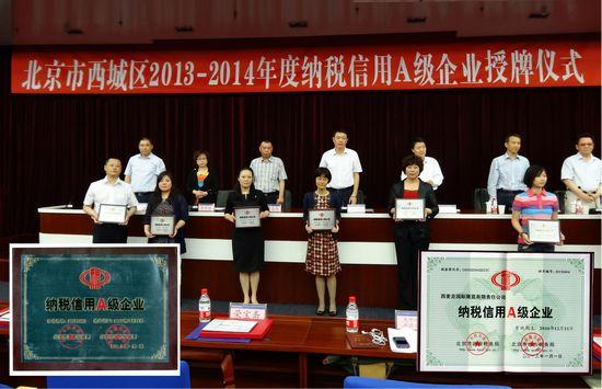 5月28日,西麥克展覽公司參加了北京市西城區(qū)國(guó)家稅務(wù)局和地方稅務(wù)局聯(lián)合舉辦的“2013至2014年度納稅信用A級(jí)企業(yè)”授牌儀式。我司憑借良好的納稅信用記錄被評(píng)為“納稅信用A級(jí)企業(yè)”,并獲得了由北京市國(guó)家稅務(wù)局和北京市地方稅務(wù)局聯(lián)合頒發(fā)的榮譽(yù)證牌。公司總經(jīng)理張力、財(cái)務(wù)部經(jīng)理劉鳳英出席儀式并領(lǐng)取證牌。
