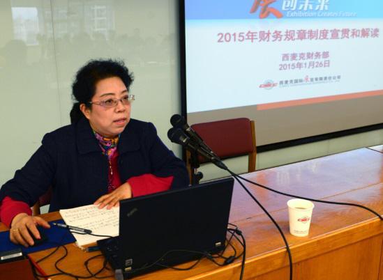 2015年1月26日,西麥克展覽公司舉行2015年規(guī)章制度宣貫與解讀會(財務(wù)部分),會議由公司副總經(jīng)理楊明主持,由財務(wù)部經(jīng)理劉鳳英主講,全體員工參加。此次宣貫會對公司新修訂的財務(wù)相關(guān)制度進行了宣貫和詳細的解讀。讓公司員工能夠深入理解公司制度和各項規(guī)定,從而提高工作效率。